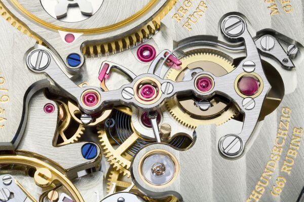 由于腕表機芯的大小限制,工程師決定將數字時間顯示設于兩個相鄰的視窗,為大尺寸的數字盤創造更多空間。德國銀時間橋構成了所有時間顯示的框架,令他們的夢想最終因這開創性的設計元素得以成真。前所未有的顯示幅度能準確無誤地報上時間。分鐘輪夾板位于最上層,而在小時圈之上,三個顯示盤同時前進。嶄新的軸承系統備有的發條為腕表提供顯示盤轉動時所需要的能量。裝置于發條盒齒輪和擺輪間的恒定動力擒縱系統精細簡潔無與倫比,為腕表擔當起搏器的角色。